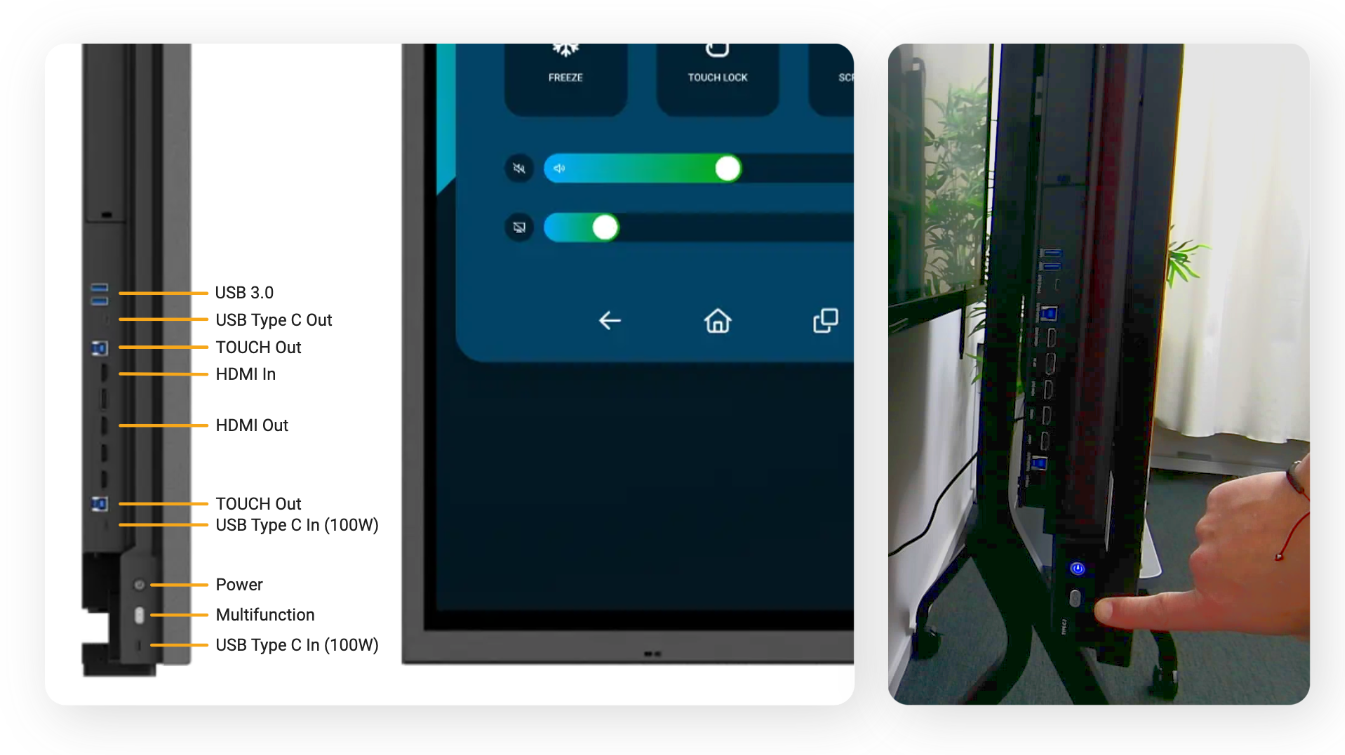 Ports on the side of the screen